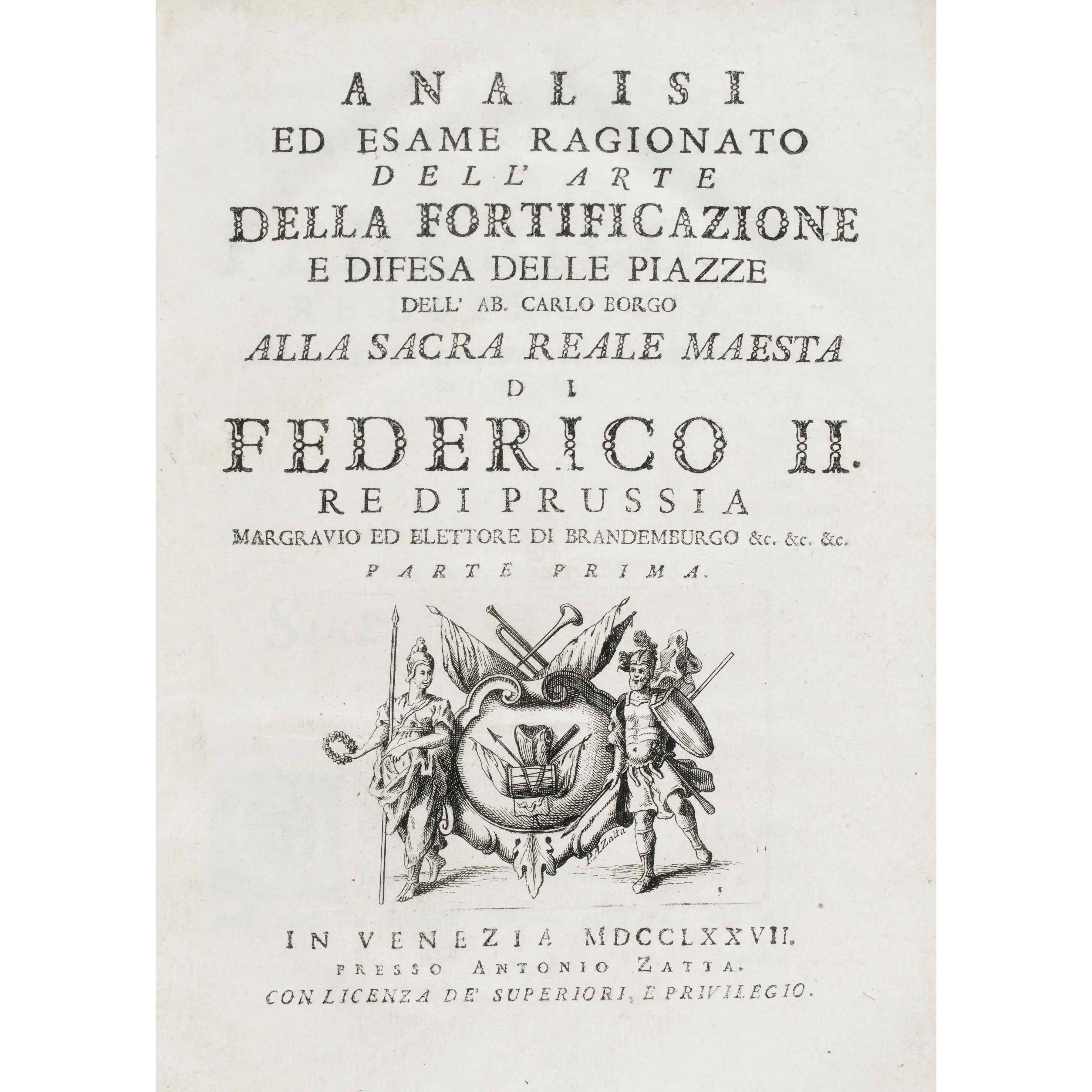 Borgo, Carlo. Analisi ed esame ragionato dell’arte della fortificazione e difesa delle piazze. Venezia, Zatta, 1777.
