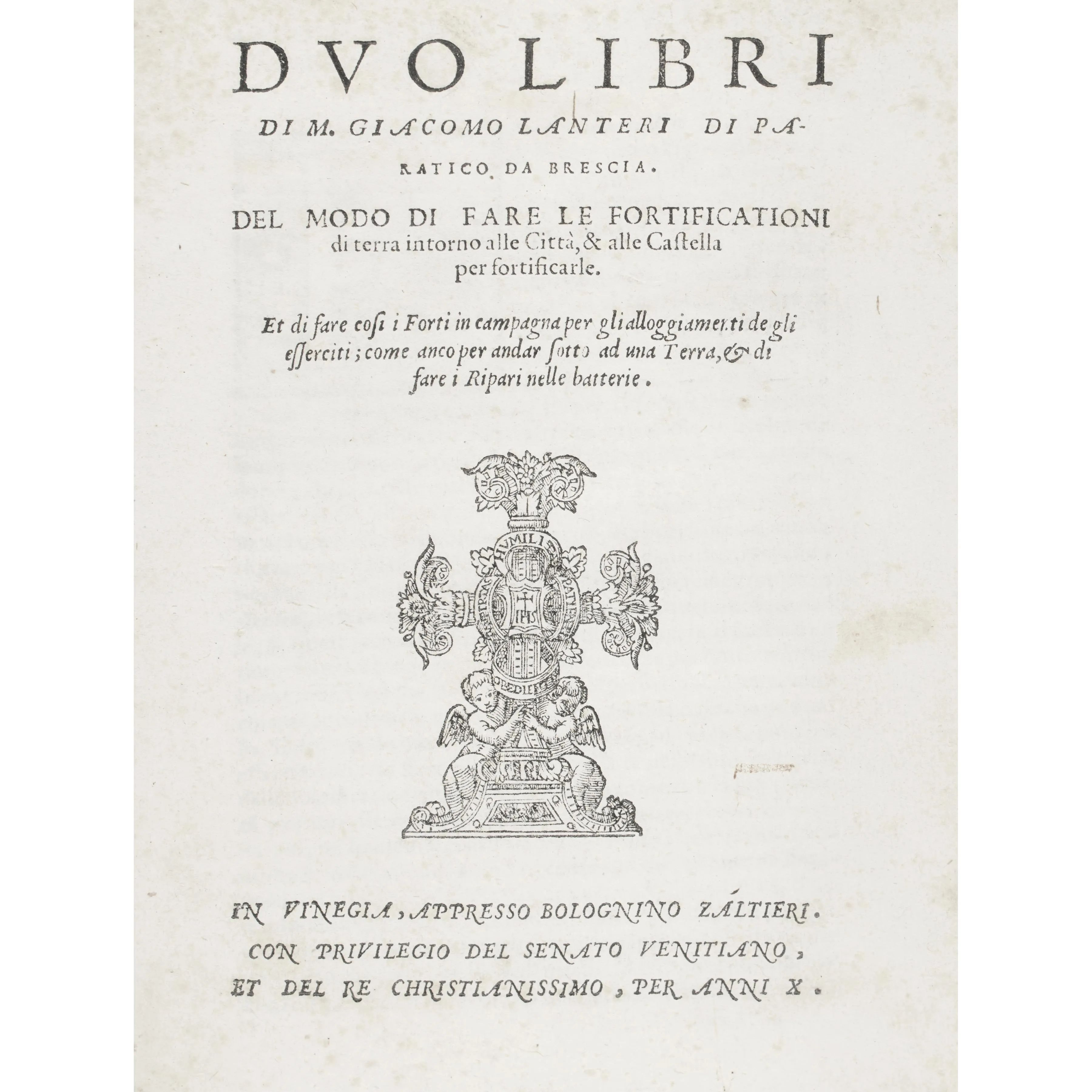 Lanteri, Giacomo. Due dialoghi … del modo di disegnare le piante delle fortezze secondo Euclide. Venezia, Valgrisi, 1557.