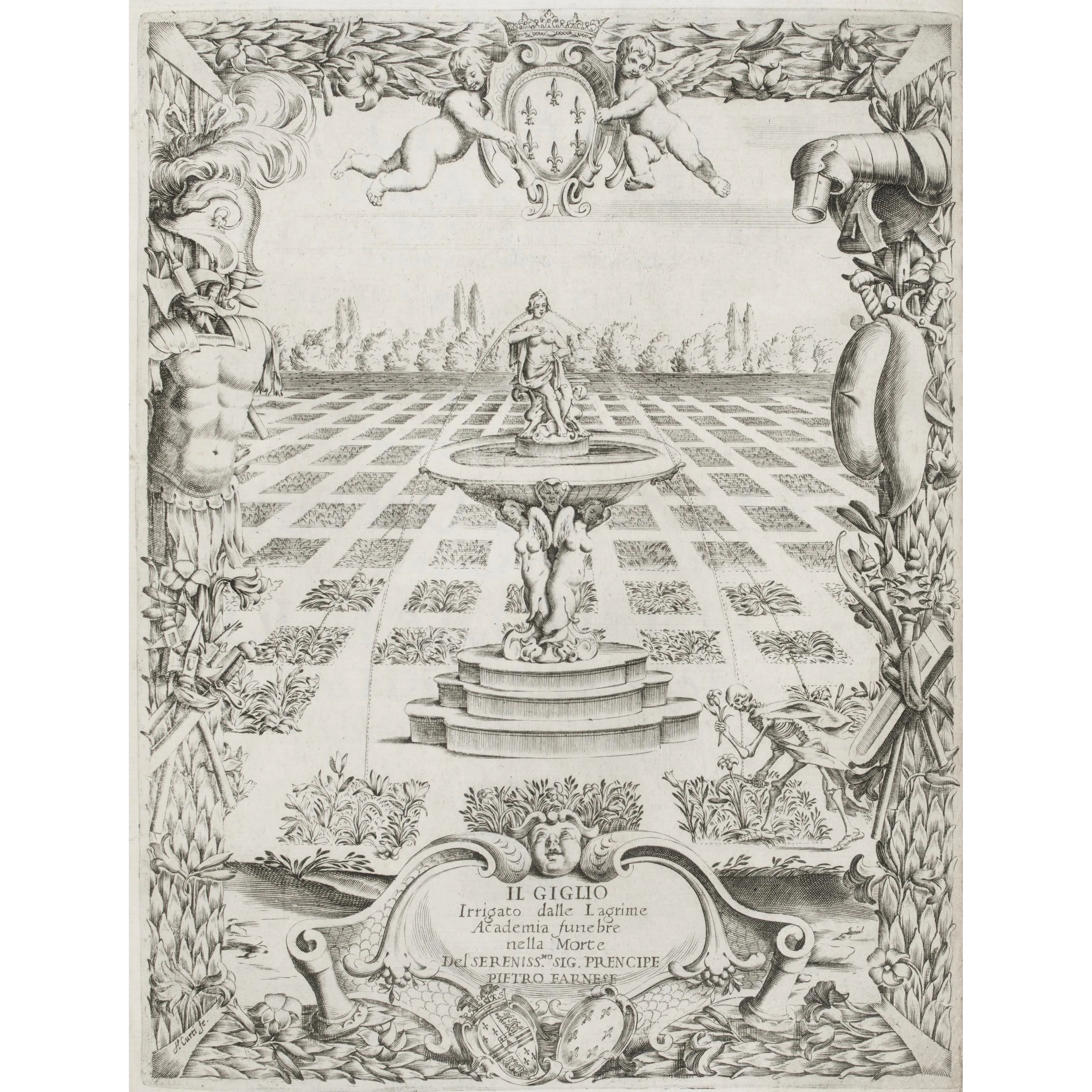 In quarto (280 x 200 mm); 128 pagine. Occhietto, antiporta calcografica, ritratto di Pietro Farnese inciso in rame, fregi tipografici incisi in legno (manca la tavola del funerale ripiegata.) Brossura moderna in cartoncino alla rustica.