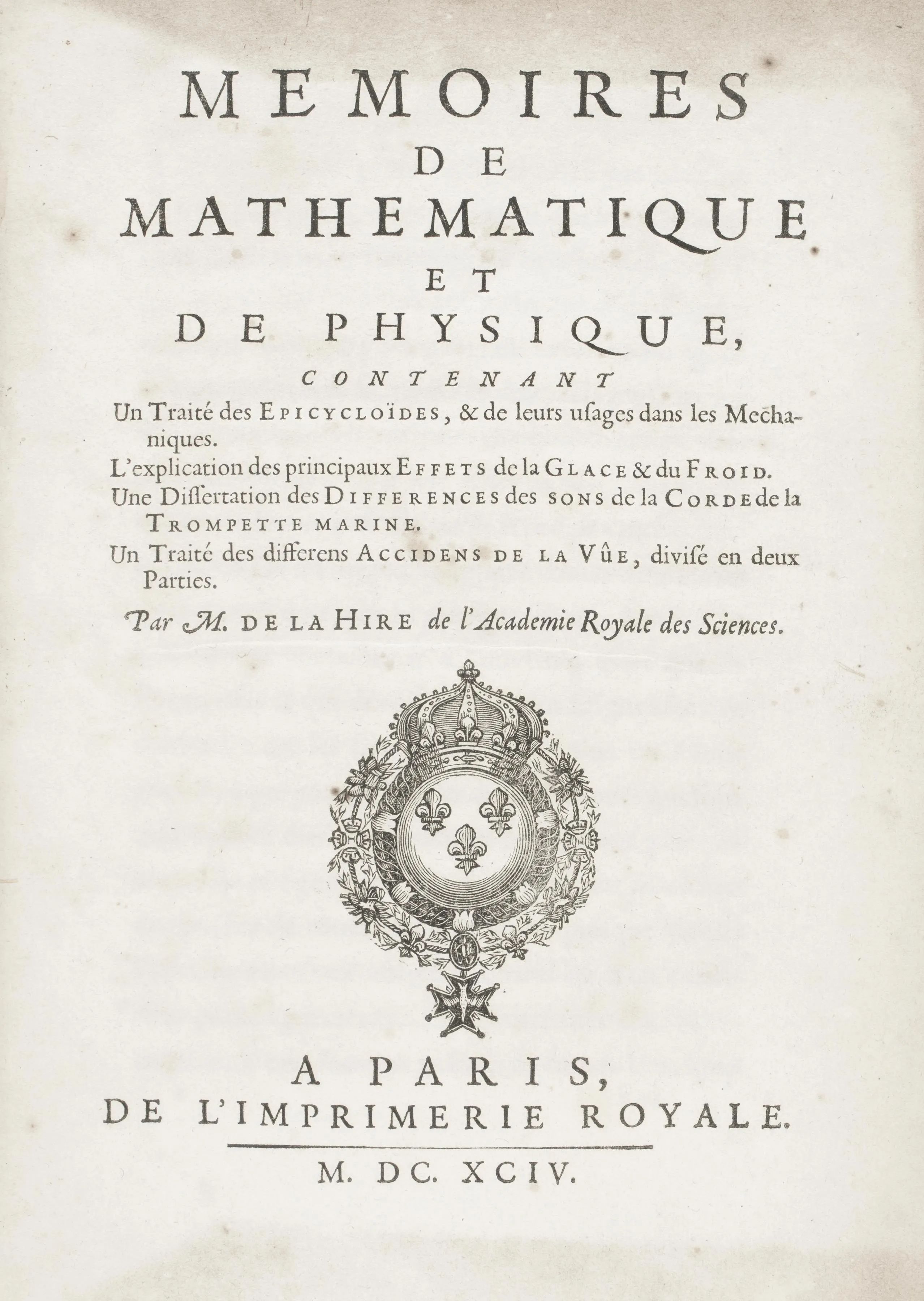 De La Hire, Philippe. Mémoires de mathematique et de physique. Parigi, Imprimerie Royale, 1694.