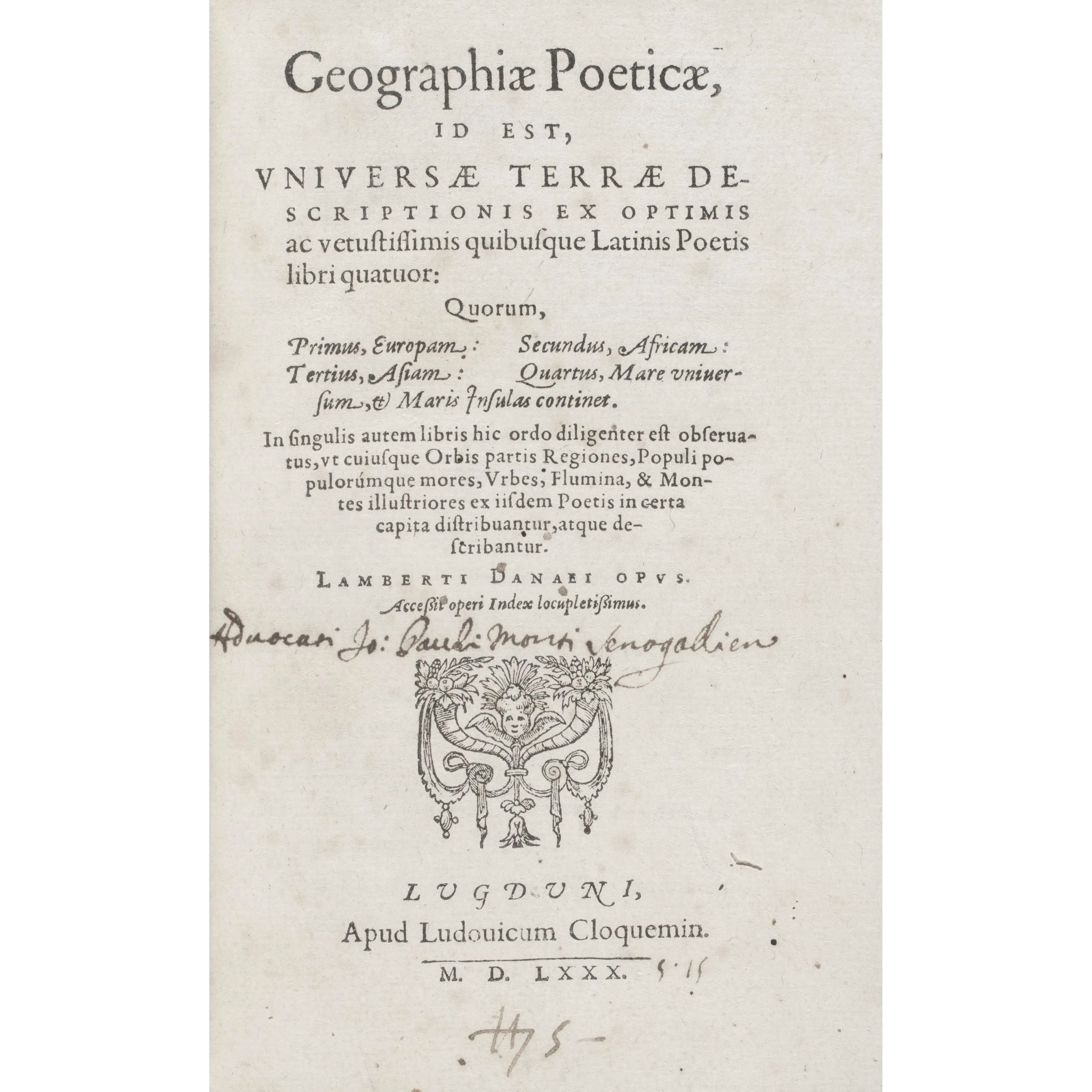 Daneau, Lambert. Geographiae Poeticae. Lione, Cloquemin, 1580.