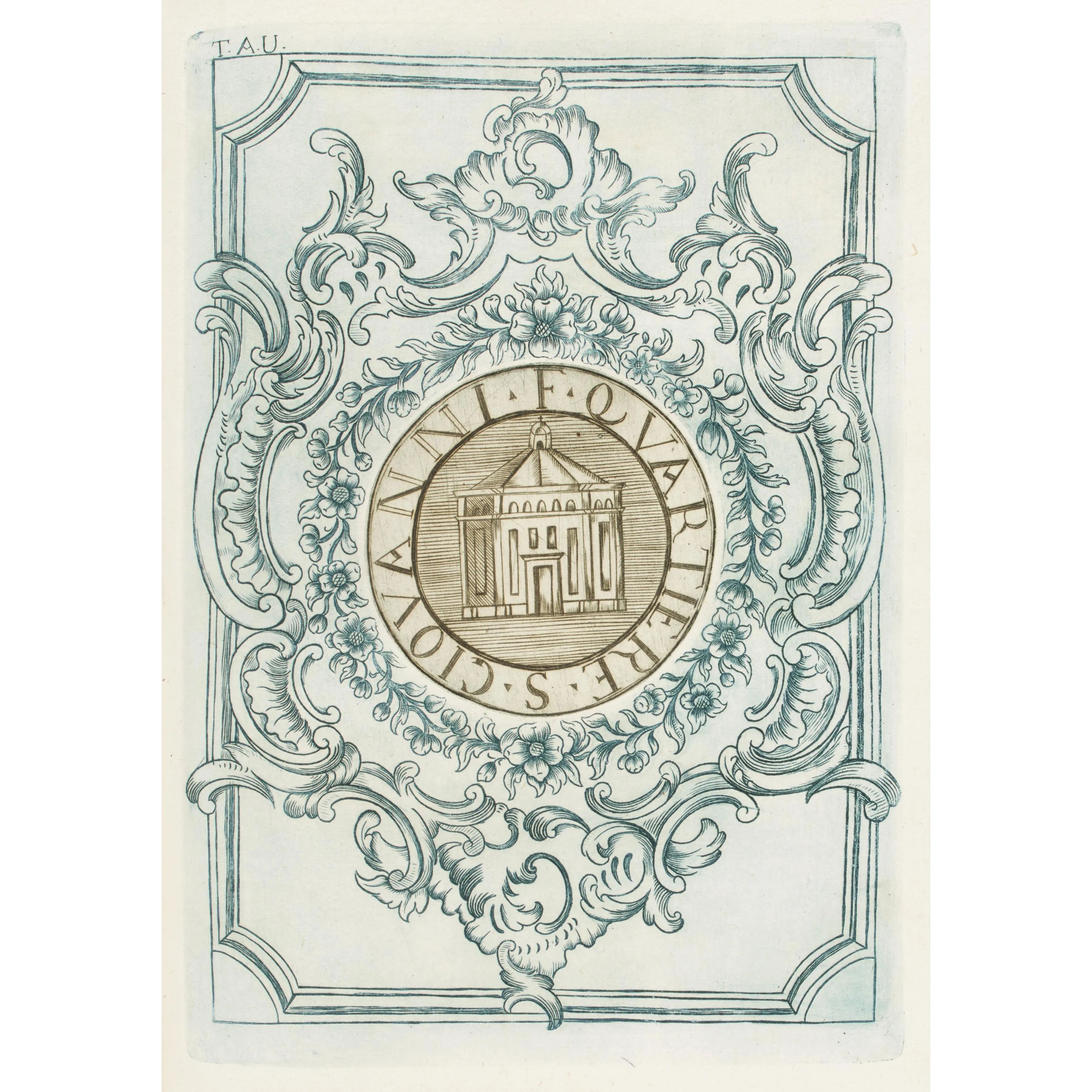In quarto (245 x 180 mm); [4], LXXXVIII, 88 con [102] pagine inserite tra le pagine 50 e 51. Antiporta e 46 tavole con le armi dei quartieri e delle chiese fiorentine incise in inchiostri policromi entro cornici a rocailles, 4 piante ripiegate dei quartieri, grande mappa di Firenze più volte ripiegata in fine volume (bruniture su poche carte.) Legatura coeva in mezza pergamena con angoli e carta colorata, titolo impresso in oro l dorso liscio, tagli policromi a spruzzo. Ex libris del Conte Giuseppe Martelli di Firenze.