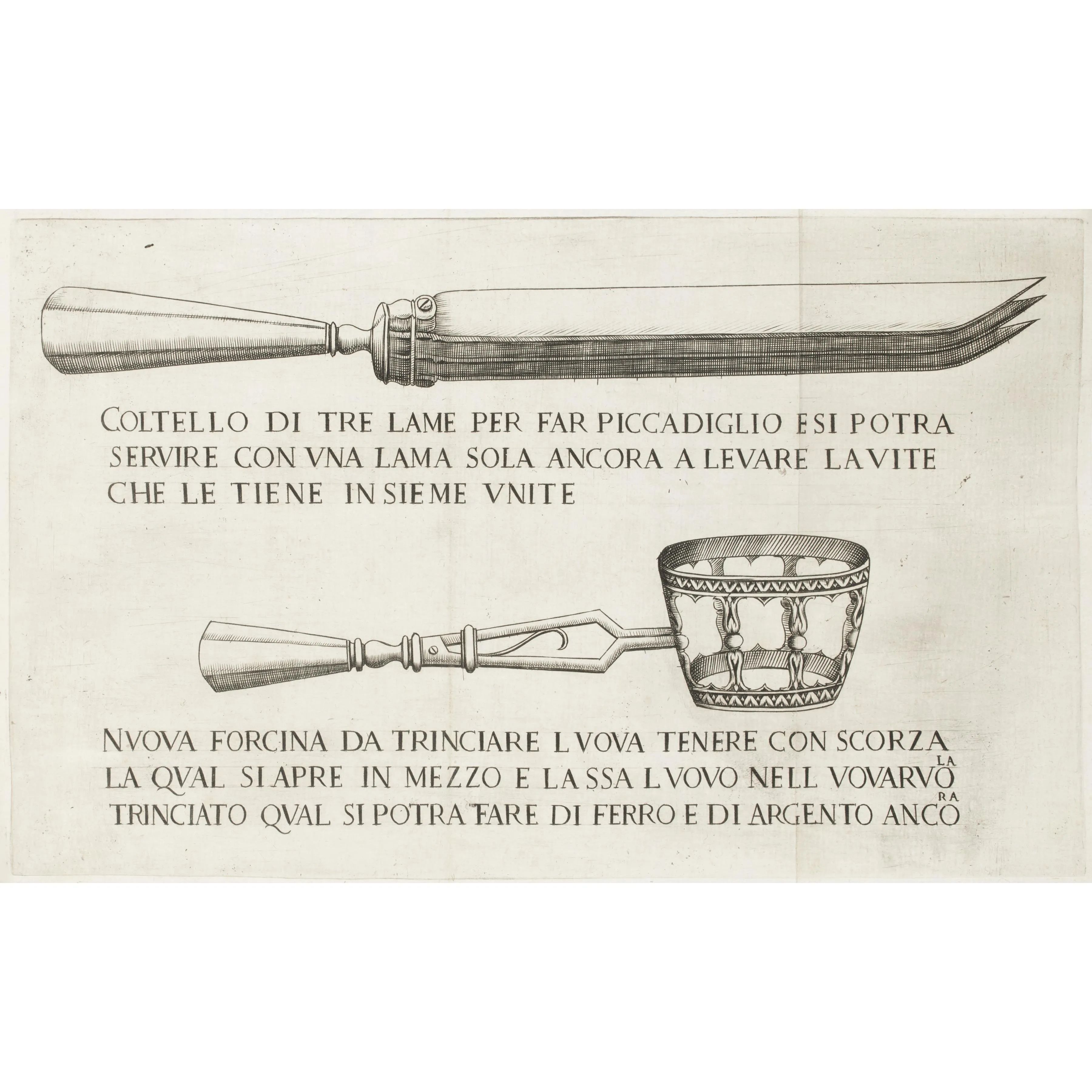 Frugoli, Antonio. Pratica, e scalcaria intitolata pianta di delicati frutti da servirsi a qualsivoglia mensa di prencipi. Legato con Discorso sopra l'officio del trinciante. Roma, Cavalli, 1638.