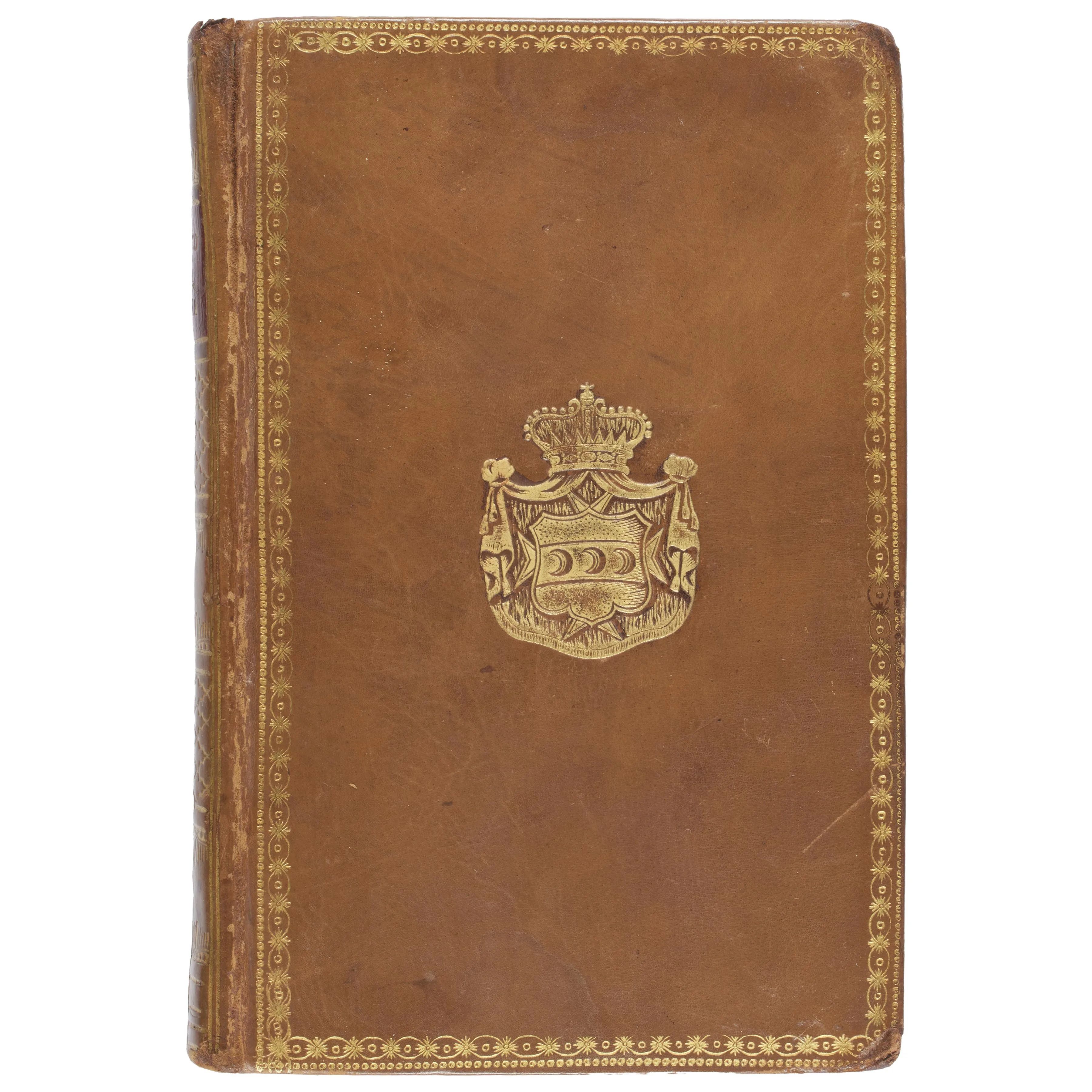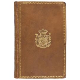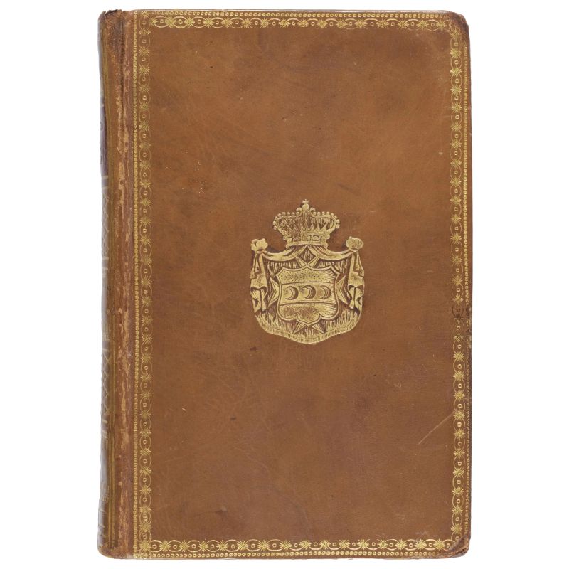 In ottavo (142 x 90 mm); [188] carte. Testo in corsivo, completo delle bianche z4 e A8 (lievi arrossature.) Legatura degli inizi del XIX secolo in vitellino nocciola con decorazione di ferri dorati, cornici di filetti e rotelle, armi principesche al centro, dorso liscio con tassello rosso per il titolo, tagli dorati. Ex libris de Ridolphis.
