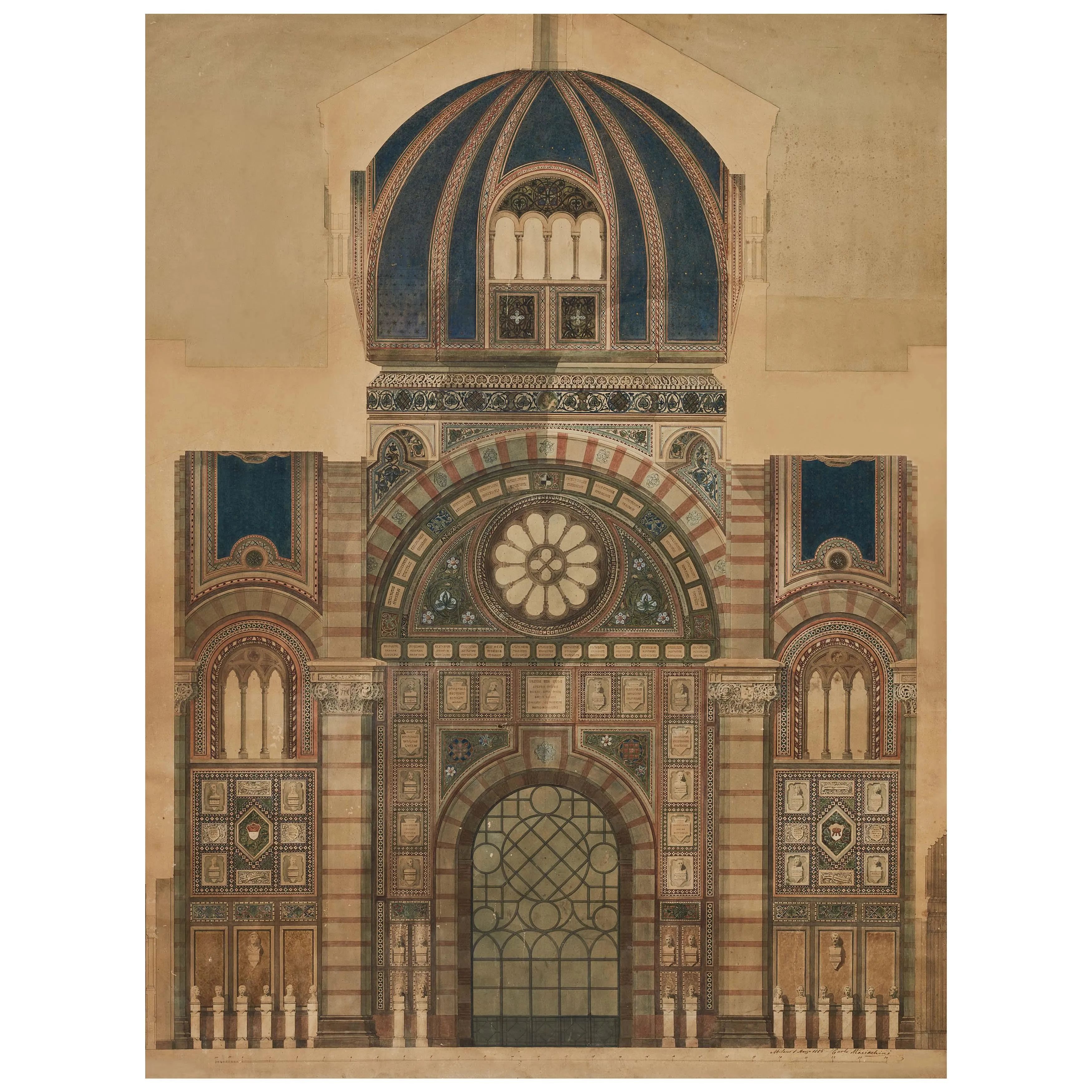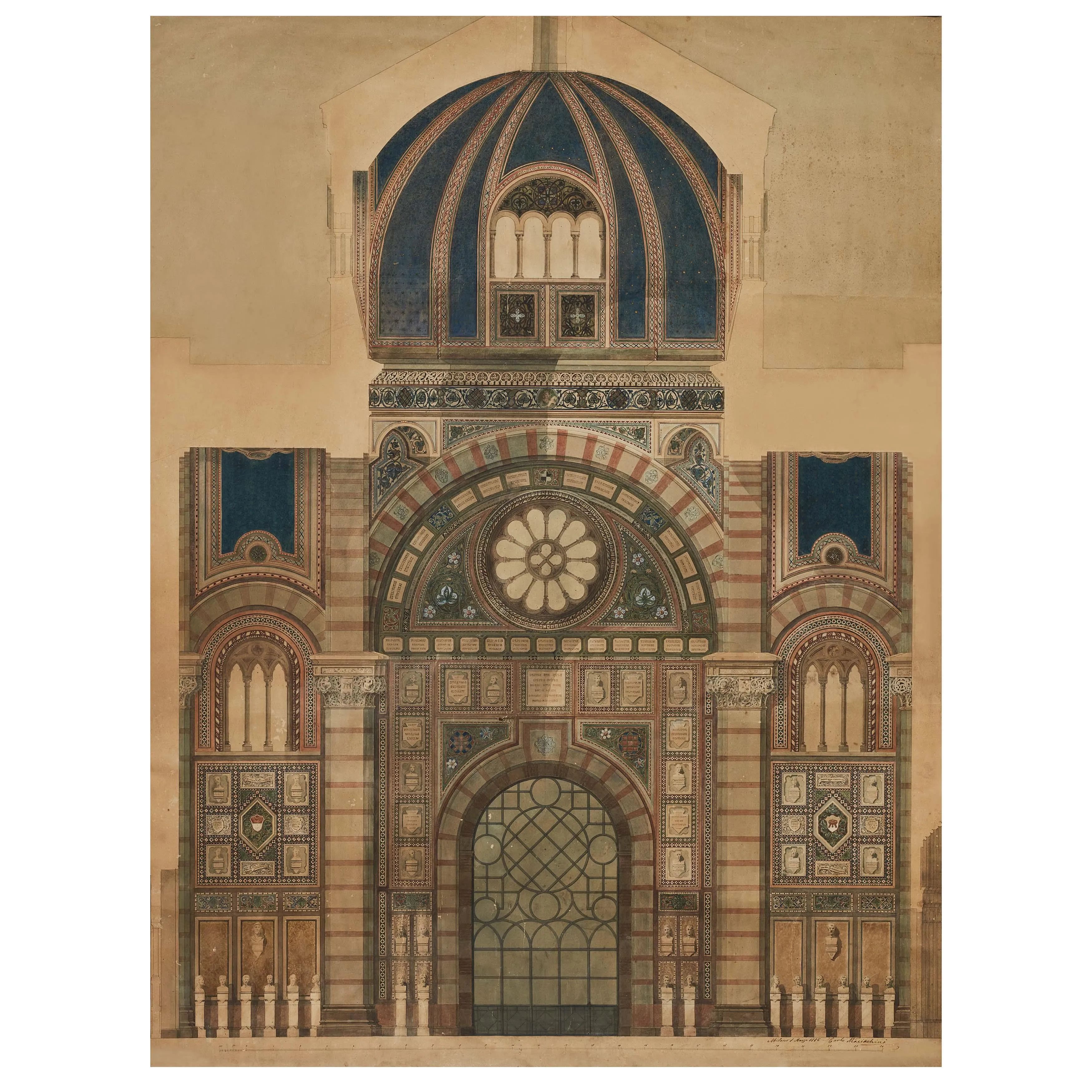 Rare technical drawing of one of the four walls inside the Famedio.