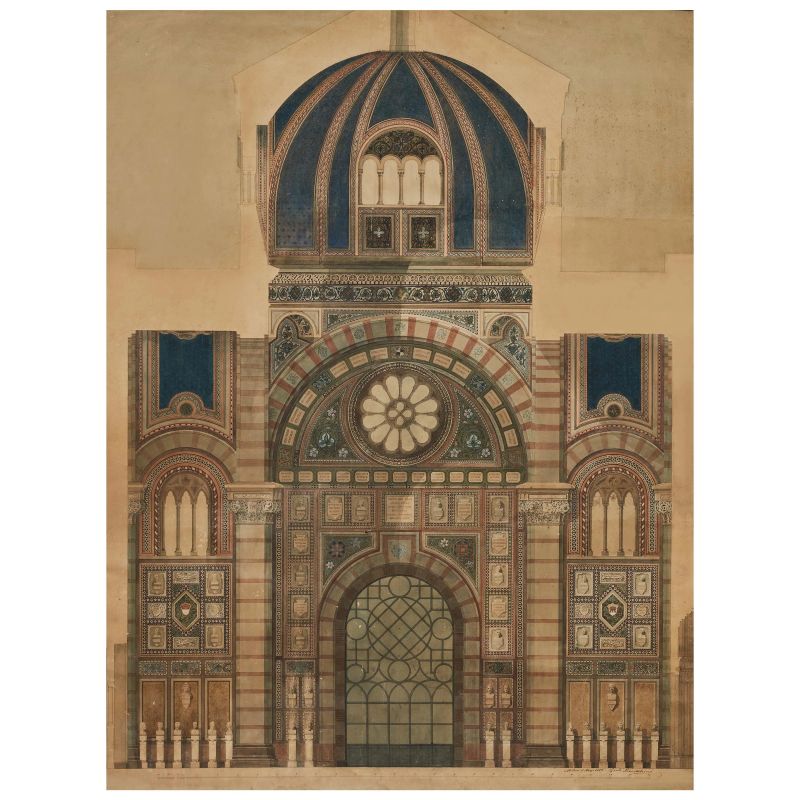 Raro disegno tecnico di una delle quattro pareti dell’interno del Famedio.