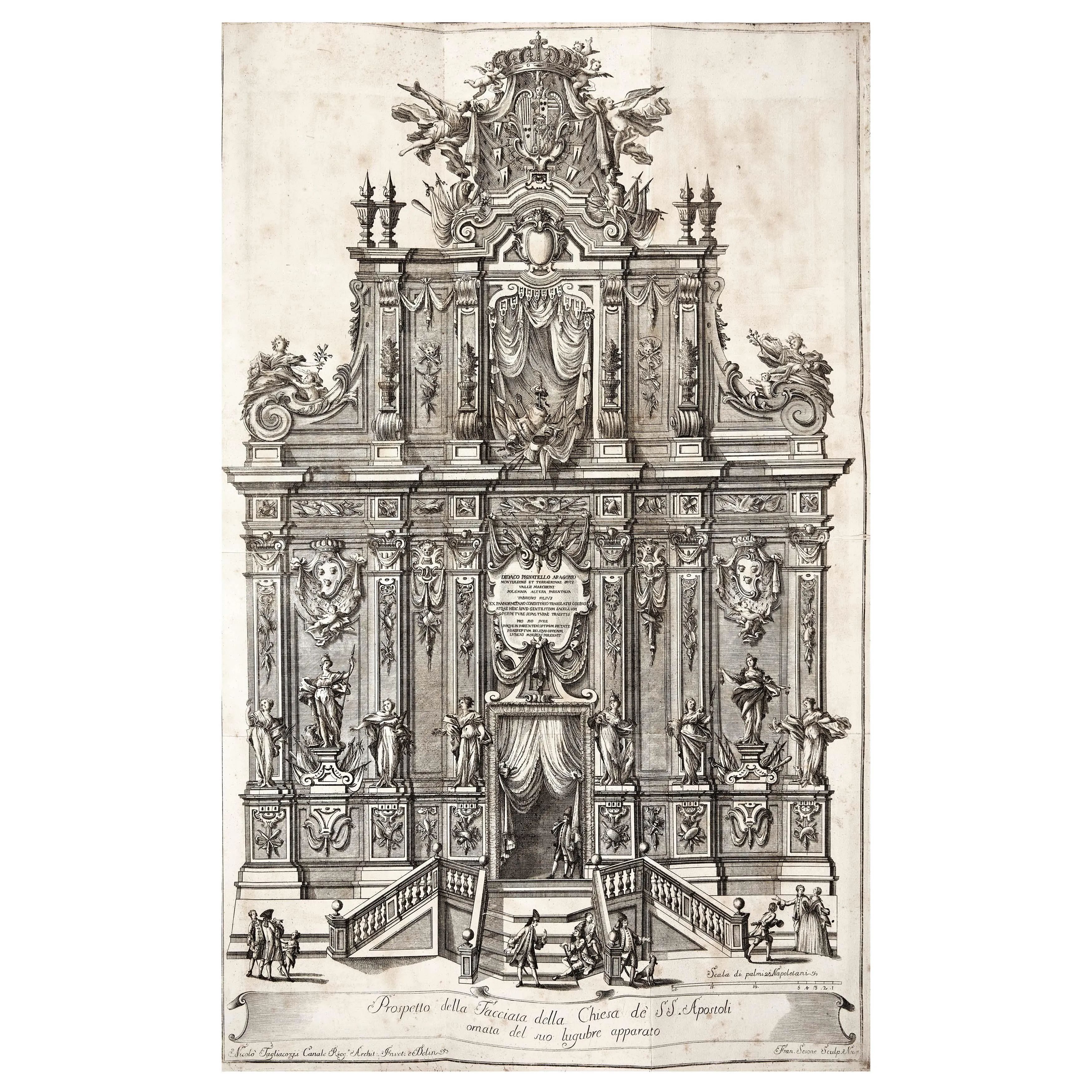 Opera commemorativa che descrive le celebrazioni funebri tenutesi a Napoli nel novembre del 1752 in onore del padre di Diego Pignatelli d'Aragona, le tavole illustrano gli apparati funebri che adornano la Chiesa dei Santissimi Apostoli, il mausoleo del Duca, e l'elaborato monumento marmoreo eretto nella chiesa su progetto dell'architetto locale Niccolò Tagliacozzi Canale.