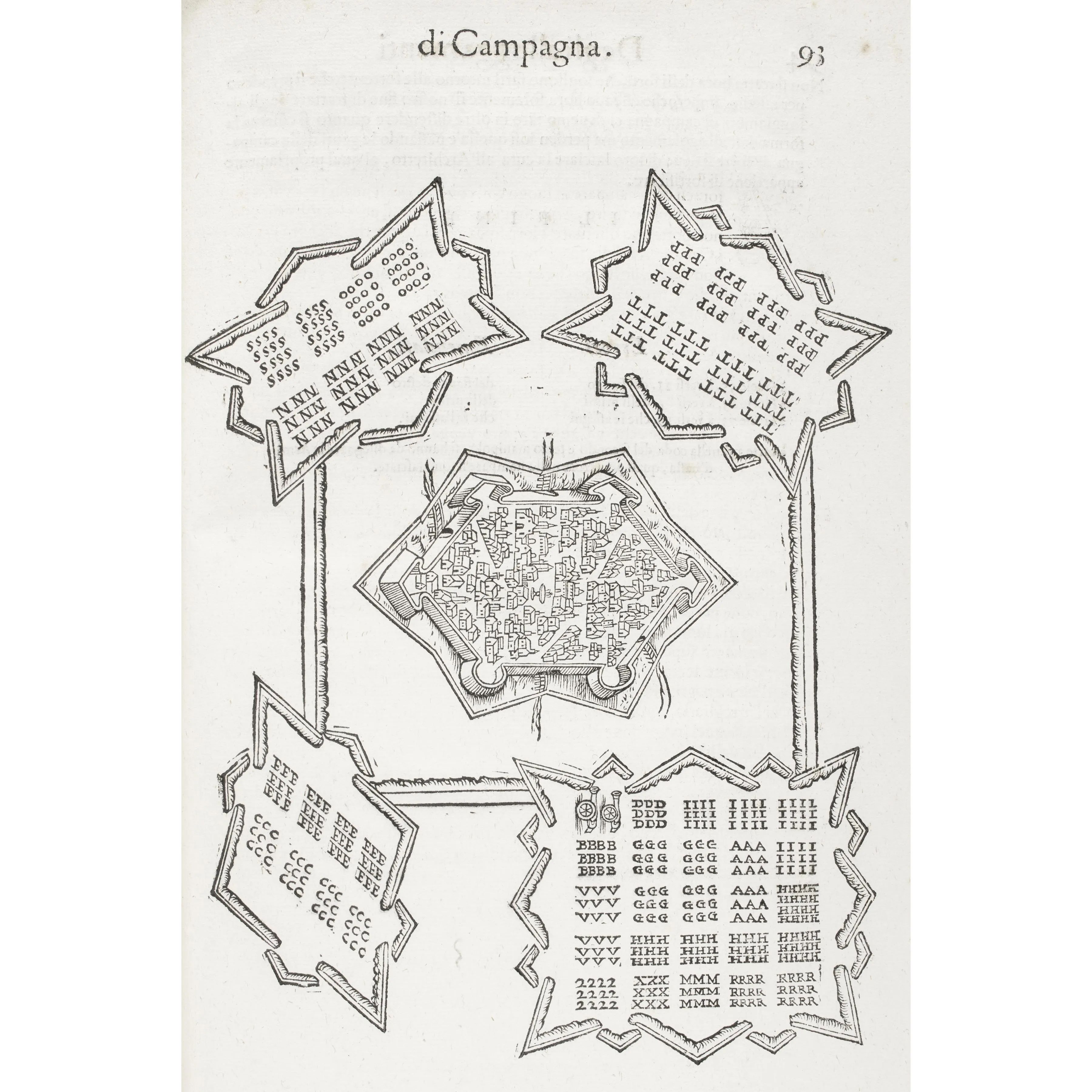 D’Evoli, Cesare. Delle ordinanze et battaglie… revisto et corretto con l'agiuntione di molte cose necessarie. Con un nuovo trattato de gli allogiamenti di campagna. Roma, Diani, 1586.