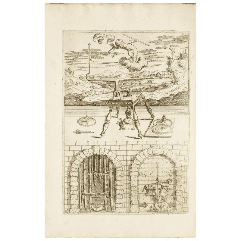 In folio (400 x 285 mm); [16], 83, [1]; 83, [1]; 128 pagine. Frontespizio inciso in rame da Philip Sadeler, ritratto calcografico dell’autore, 48 tavole fuori testo delle quali 11 ripiegate (qualche foglio un po’ ingiallito, alcuni aloni.) Legatura del XIX secolo in mezza pergamena con angoli e carta marmorizzata, tassello rosso per il titolo in oro al dorso. Ex libris Gianni Boccoli.