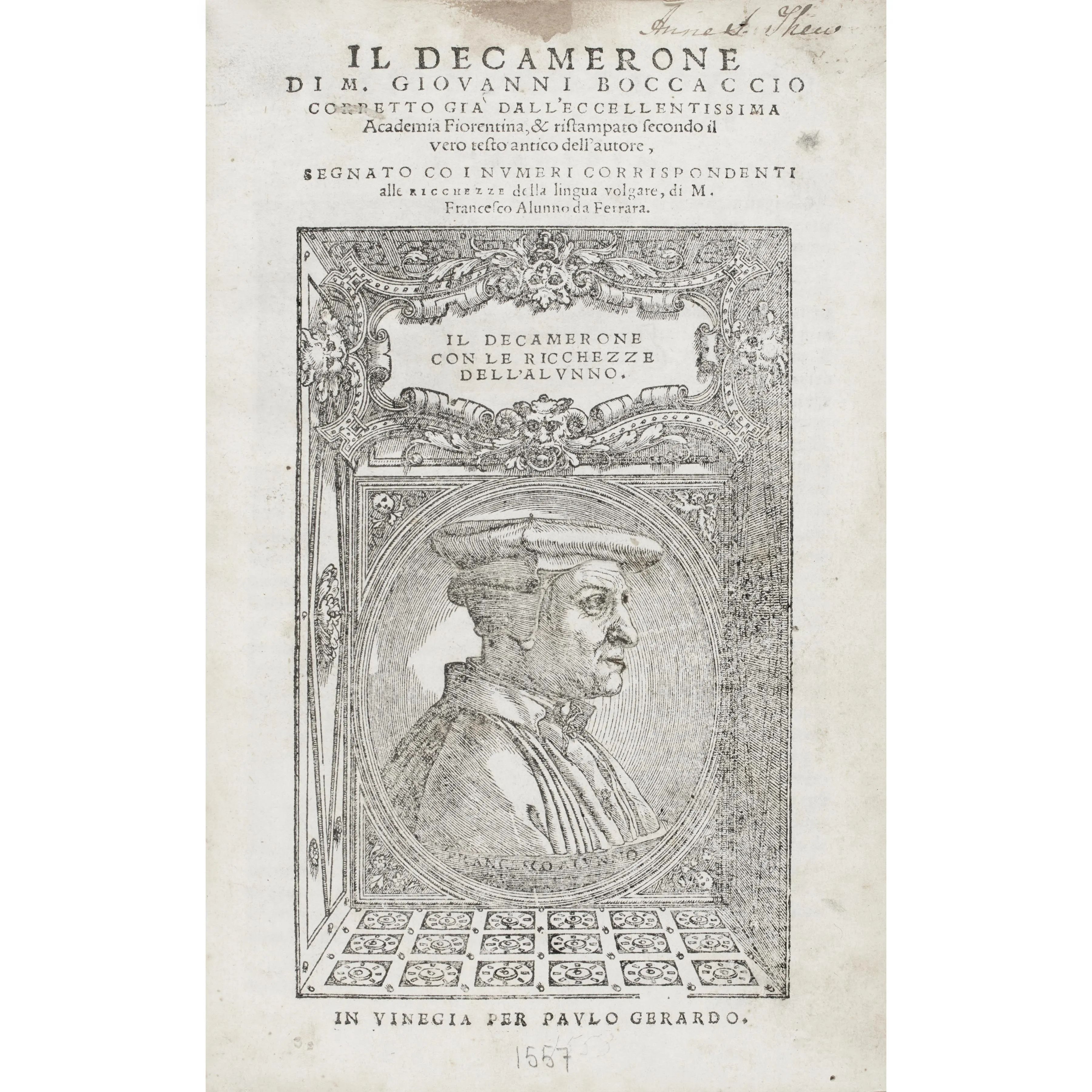 Boccaccio, Giovanni. Il Decamerone. Venezia, per Gherardo, [1557].
