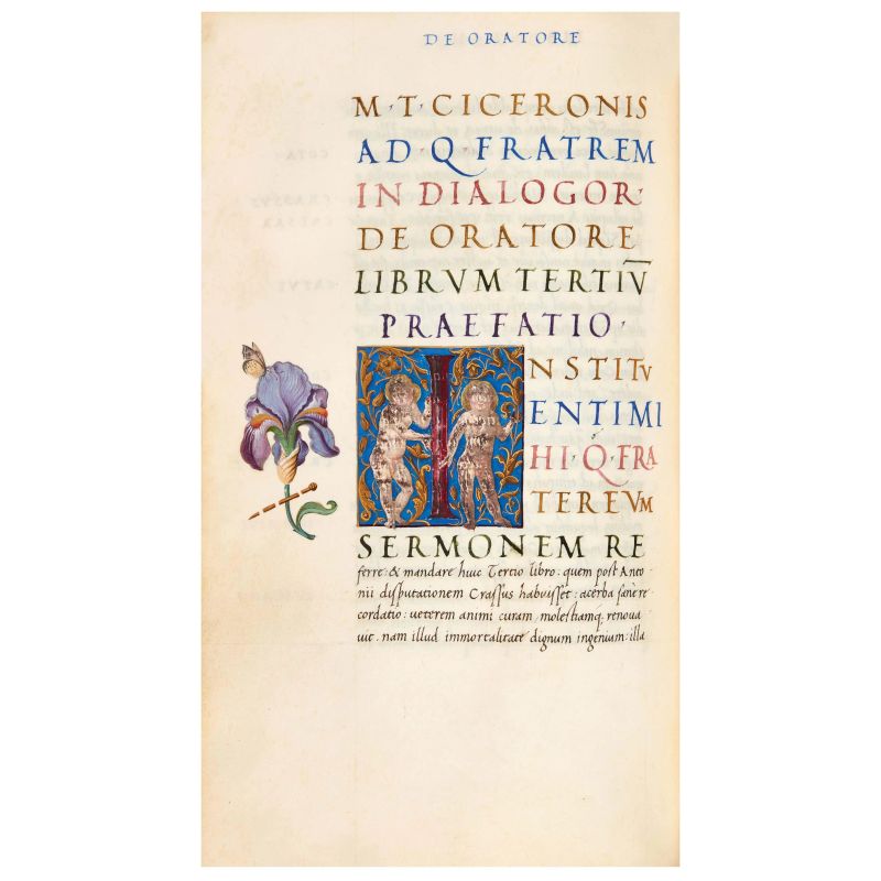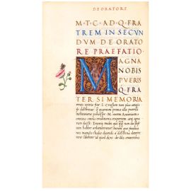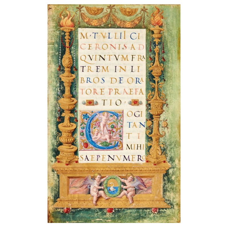 Una legatura architettonica a intarsio di grandissima importanza e rarità su un superbo manoscritto calligrafico prodotto da uno dei più grandi scribi del Rinascimento, Bartolomeo Sanvito, datato e firmato con le sue iniziali al colophon