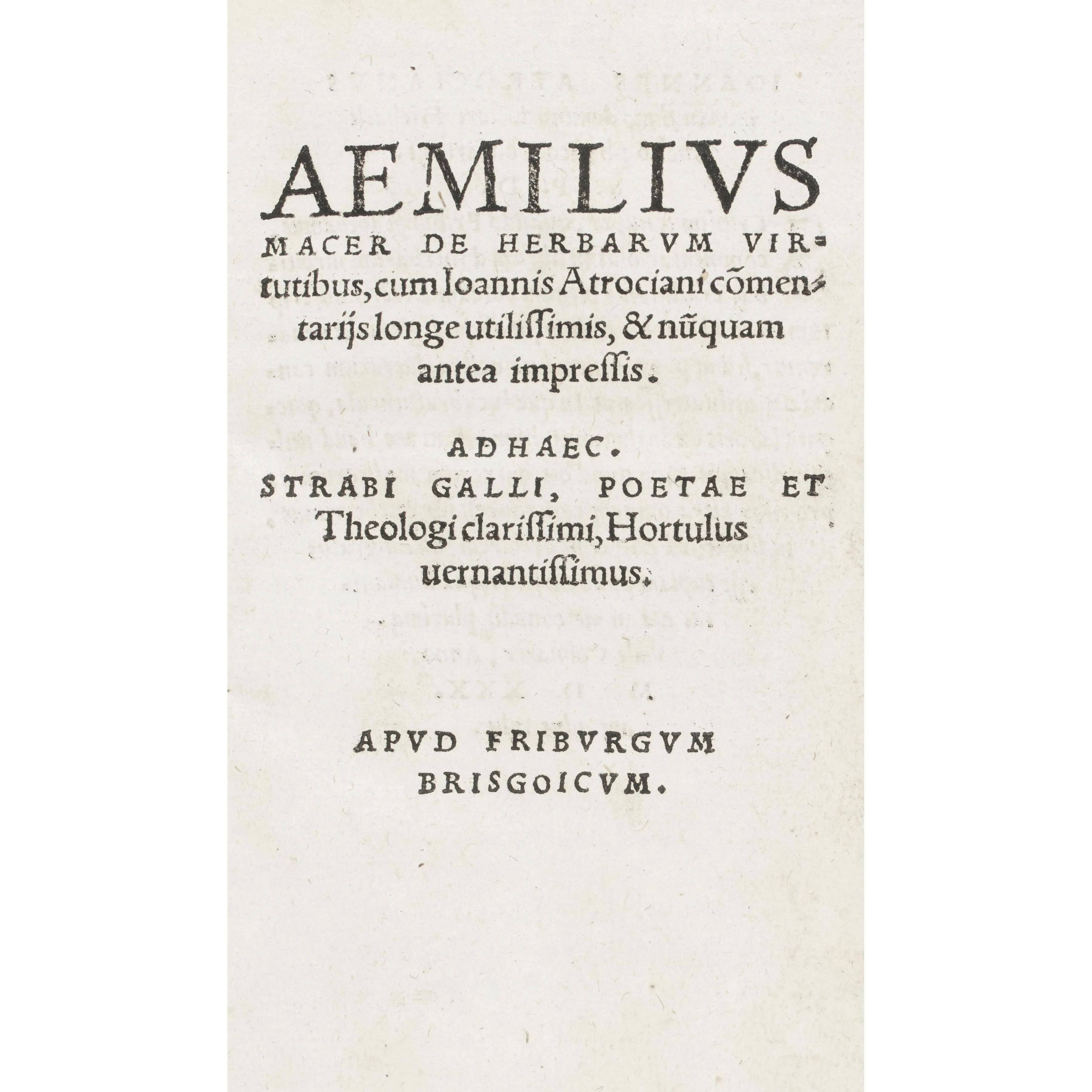 Macer, pseudonimo di Oddone di Meung. De herbarum virtutibus. Friburgo, Faber, 1530.