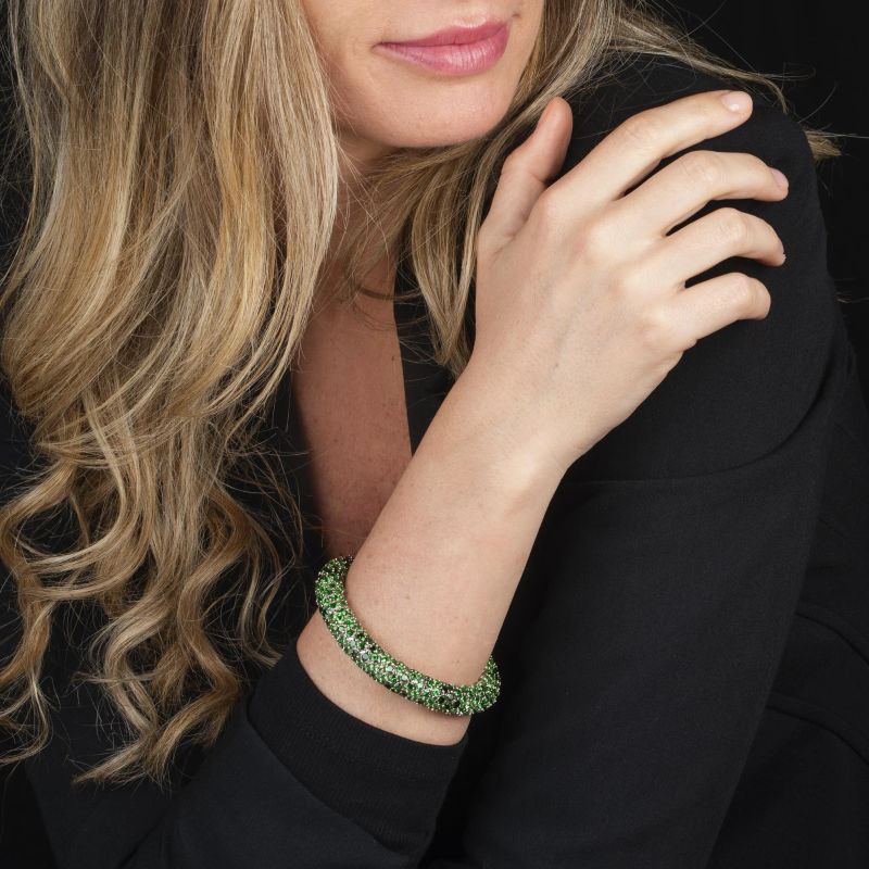 TSAVORITE TUBOLAR BRACELET IN 18KT WHITE GOLD
