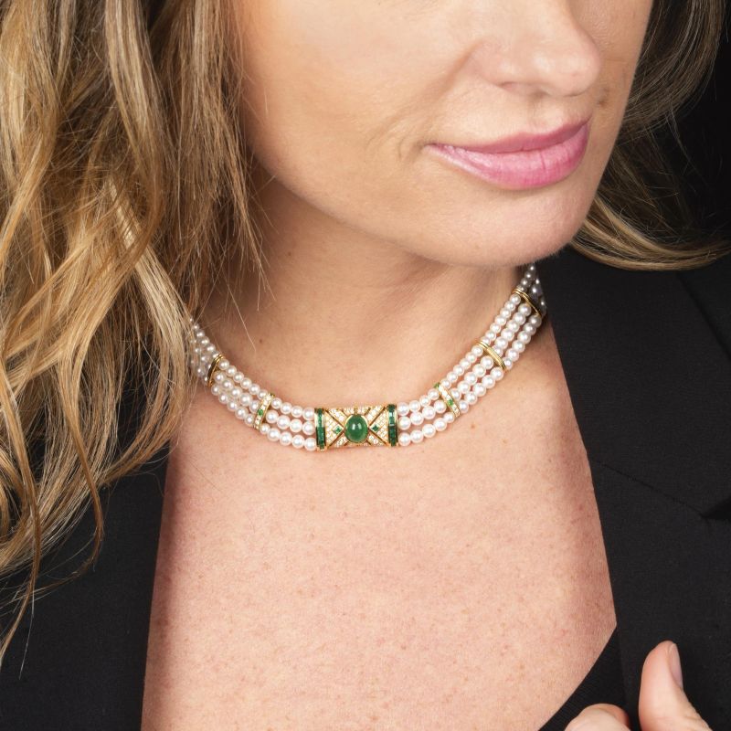 GIROCOLLO CON SMERALDI DIAMANTI E PERLE