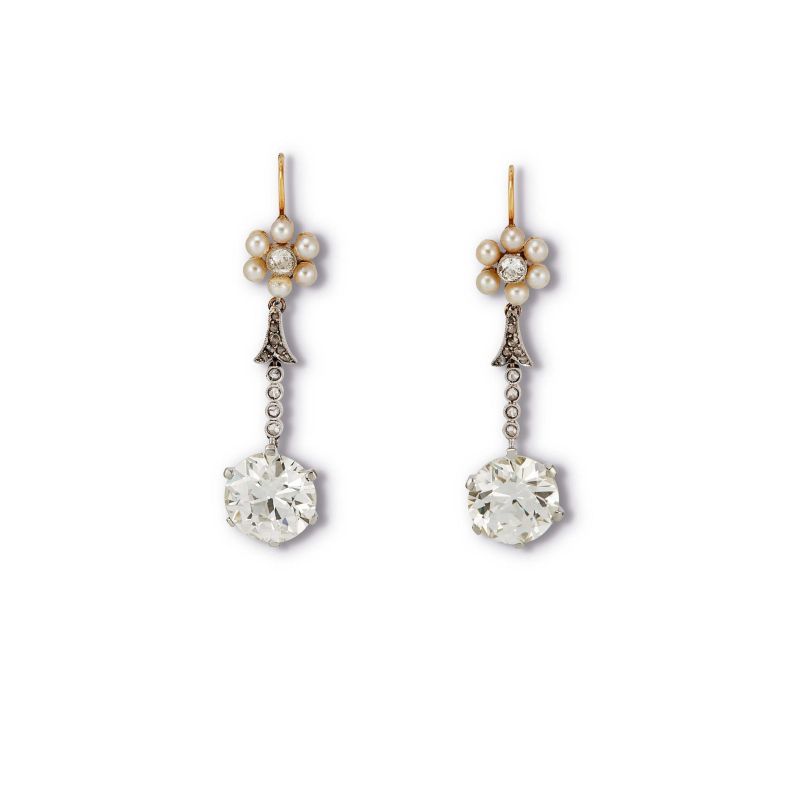 PAIO DI ORECCHINI PENDENTI CON DIAMANTI E PERLE