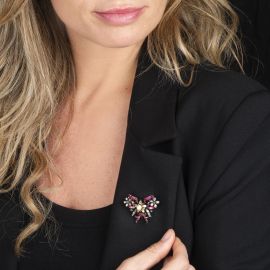 SPILLA CON PERLA, RUBINI E DIAMANTI
