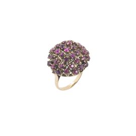 in oro giallo 14kt, impreziosito da pavè di rubini taglio rotondo per ct 2.60 circa, punzone 14kt, mis. 12/52, gr. 7