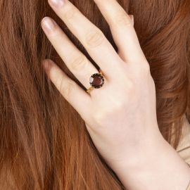 FUME QUARTZ RING IN 18KT YELLOW GOLD