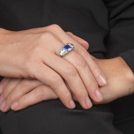 ANELLO CON ZAFFIRO SINTETICO E DIAMANTI
