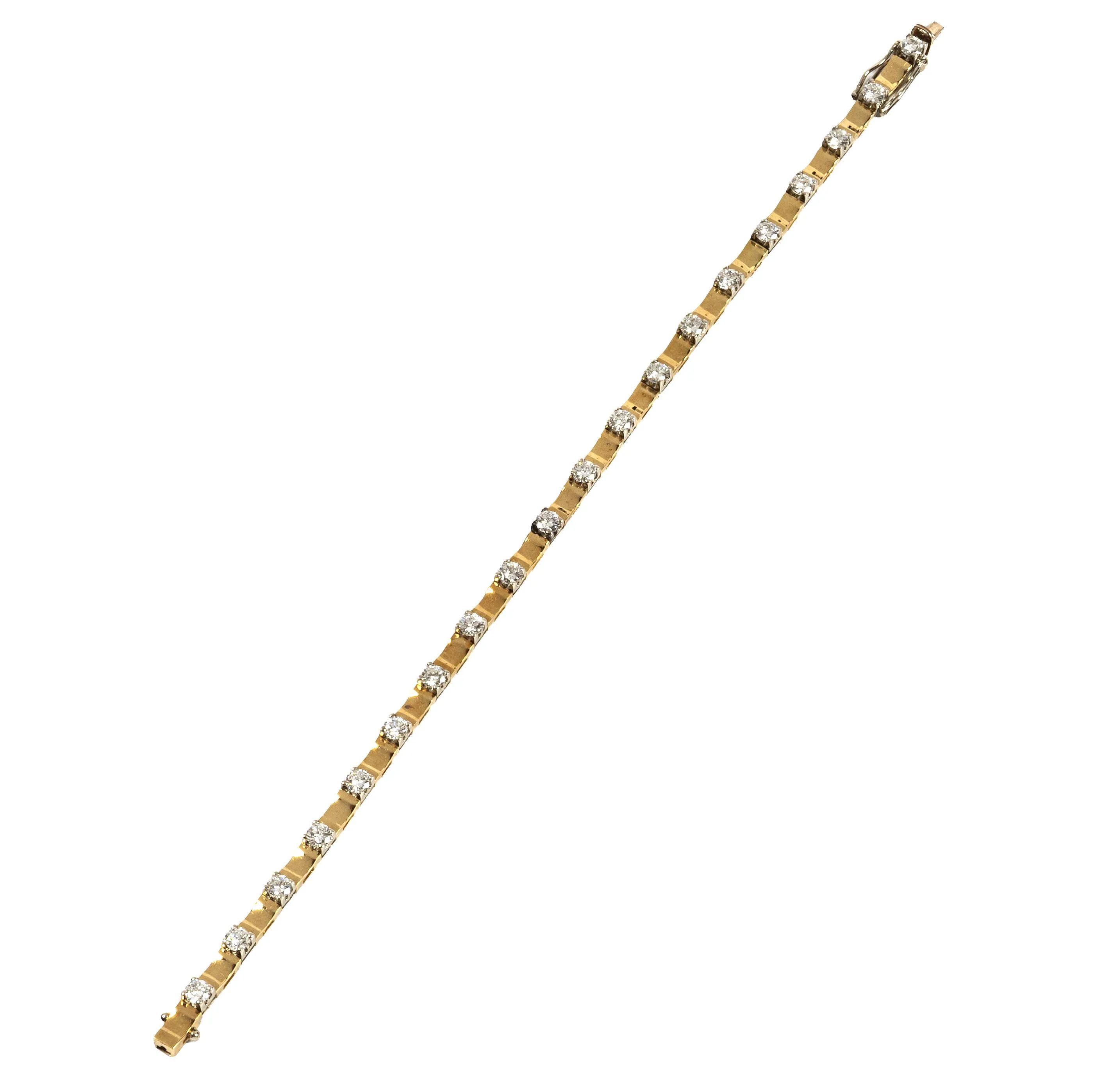 in oro giallo e bianco 18kt, con diamanti taglio brillante per ct 3 circa, chiusura a cassetta, punzone 750, lungh. cm 18.3, gr. 13