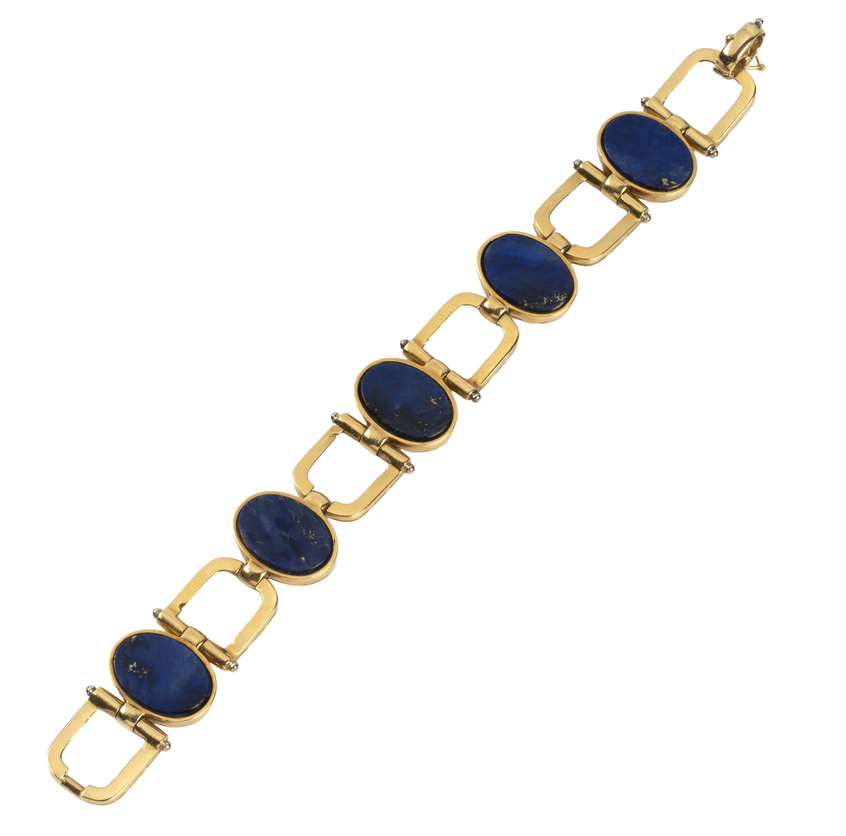 in oro giallo 18kt, composto da una serie di maglie articolate, alternate a lapislazzuli dal taglio ovale, chiusura con sicurezza, lungh. cm 19, gr. 46