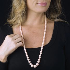 composta da una serie di sfere digradanti in corallo di mm 13-5 circa, fermatura in oro giallo 18kt con diamanti taglio brillante per ct 0.30 circa, punzone 750, lungh. cm 80 circa, gr. 81