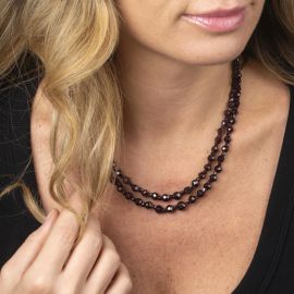 composto da una doppia fila di granati sfaccettati, fermatura in oro giallo e bianco 18kt, punzone 750, lungh. cm 44 circa, gr. 48