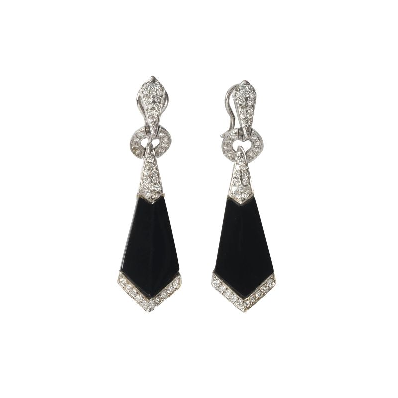 PAIO DI ORECCHINI PENDENTI CON ONICE E DIAMANTI