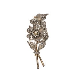 FLORAL DIAMOND BROOCH IN 18KT YELLOW GOLD AND SILVER
