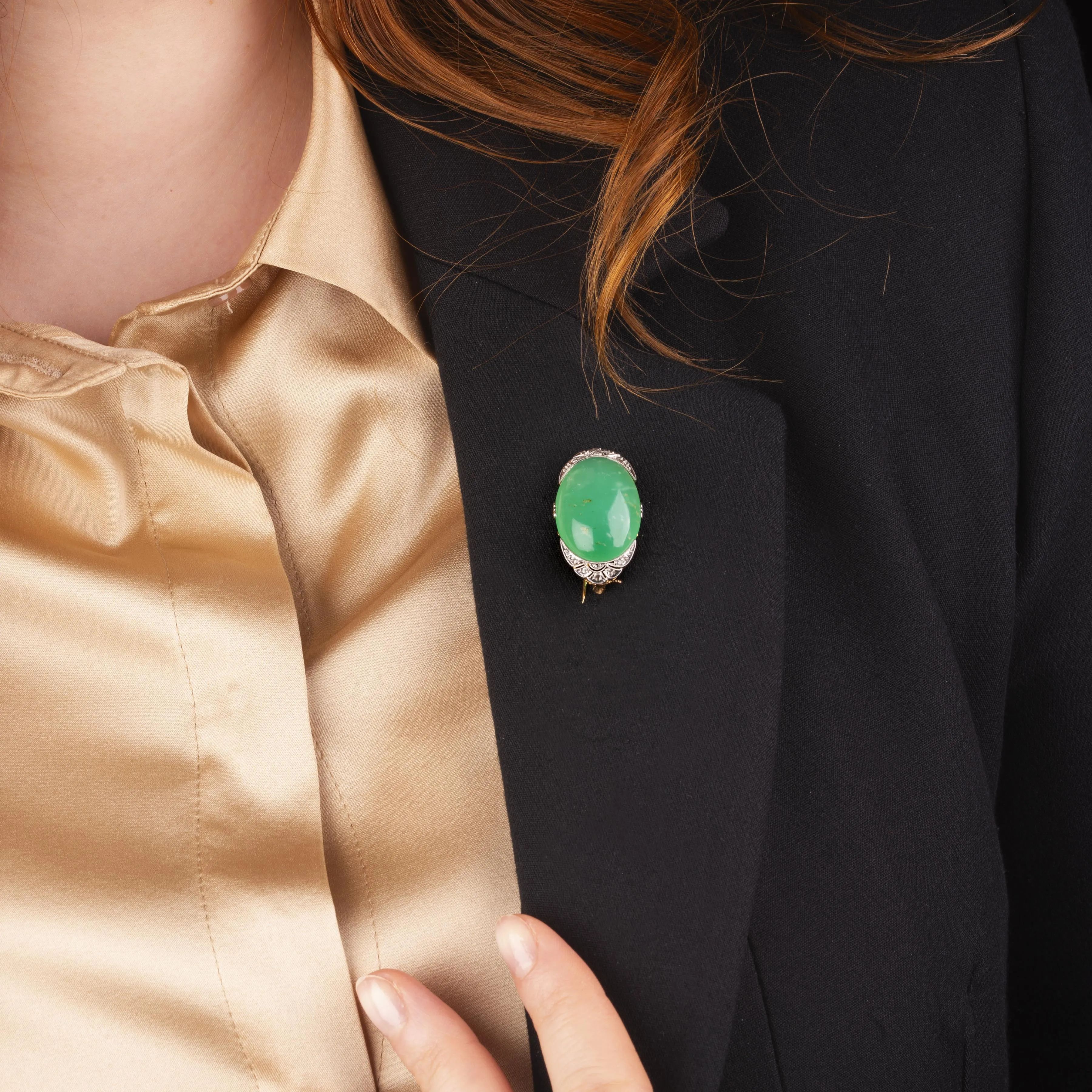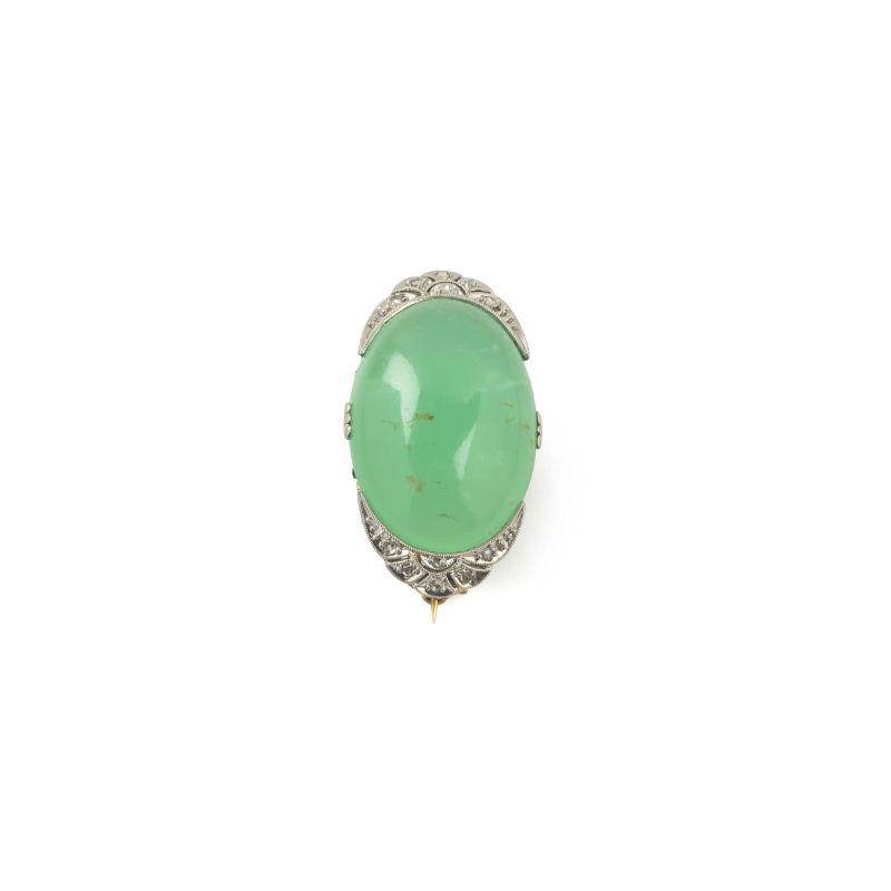 CHALCEDONY AND DIAMOND BROOCH IN 18KT TWO TONE GOLD