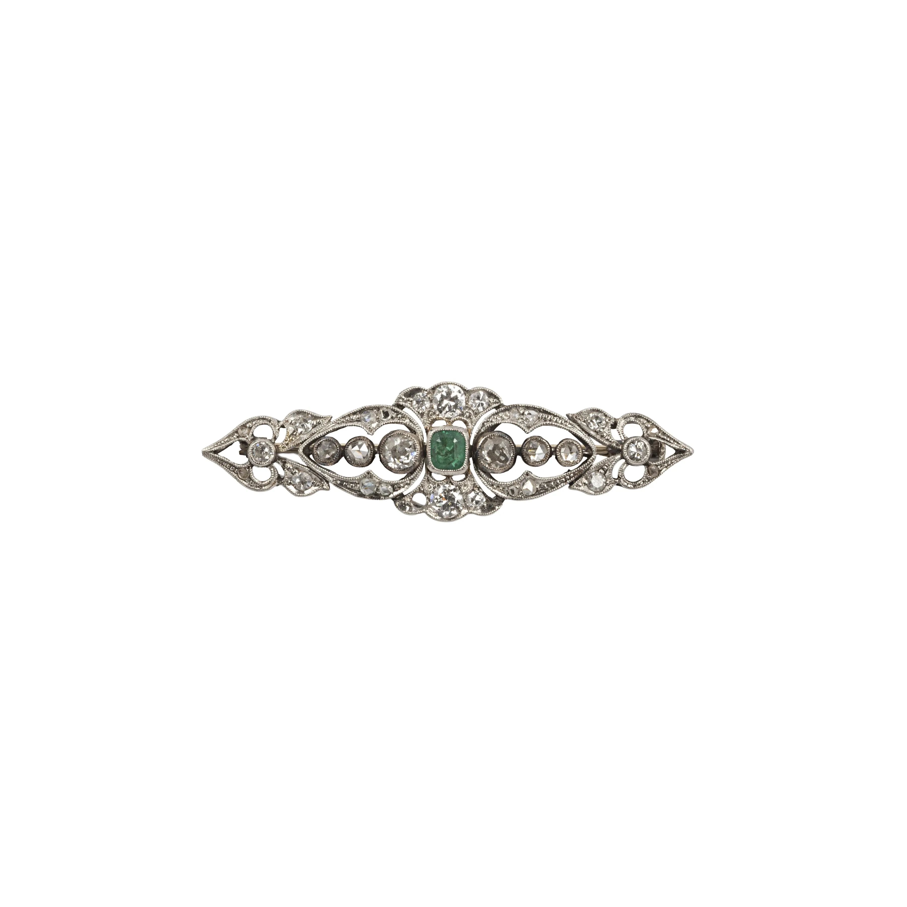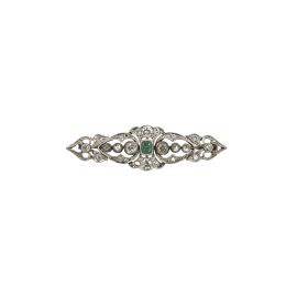 EMERALD AND DIAMOND BROOCH IN PLATINUM AND 18KT WHITE GOLD