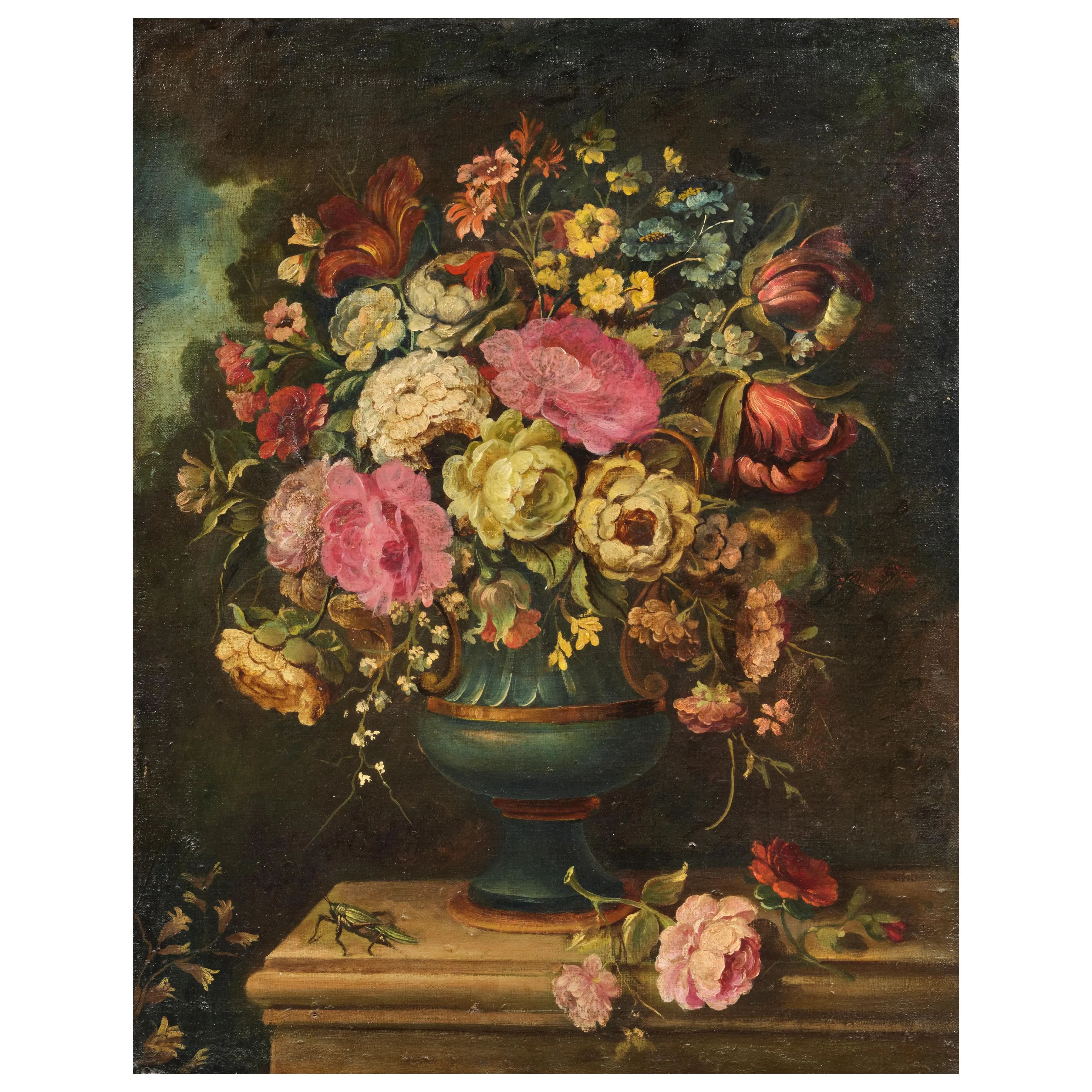 STILL LIFE WITH VASE OF FLOWERS AND A CRICKET