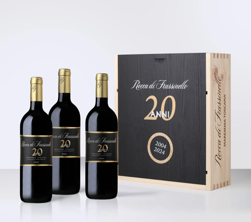 1 Cofanetto in legno da 3 bottiglie da 0,75 di Rocca di Frassinello 2020 | Edizione Celebrativa 20 ANNI