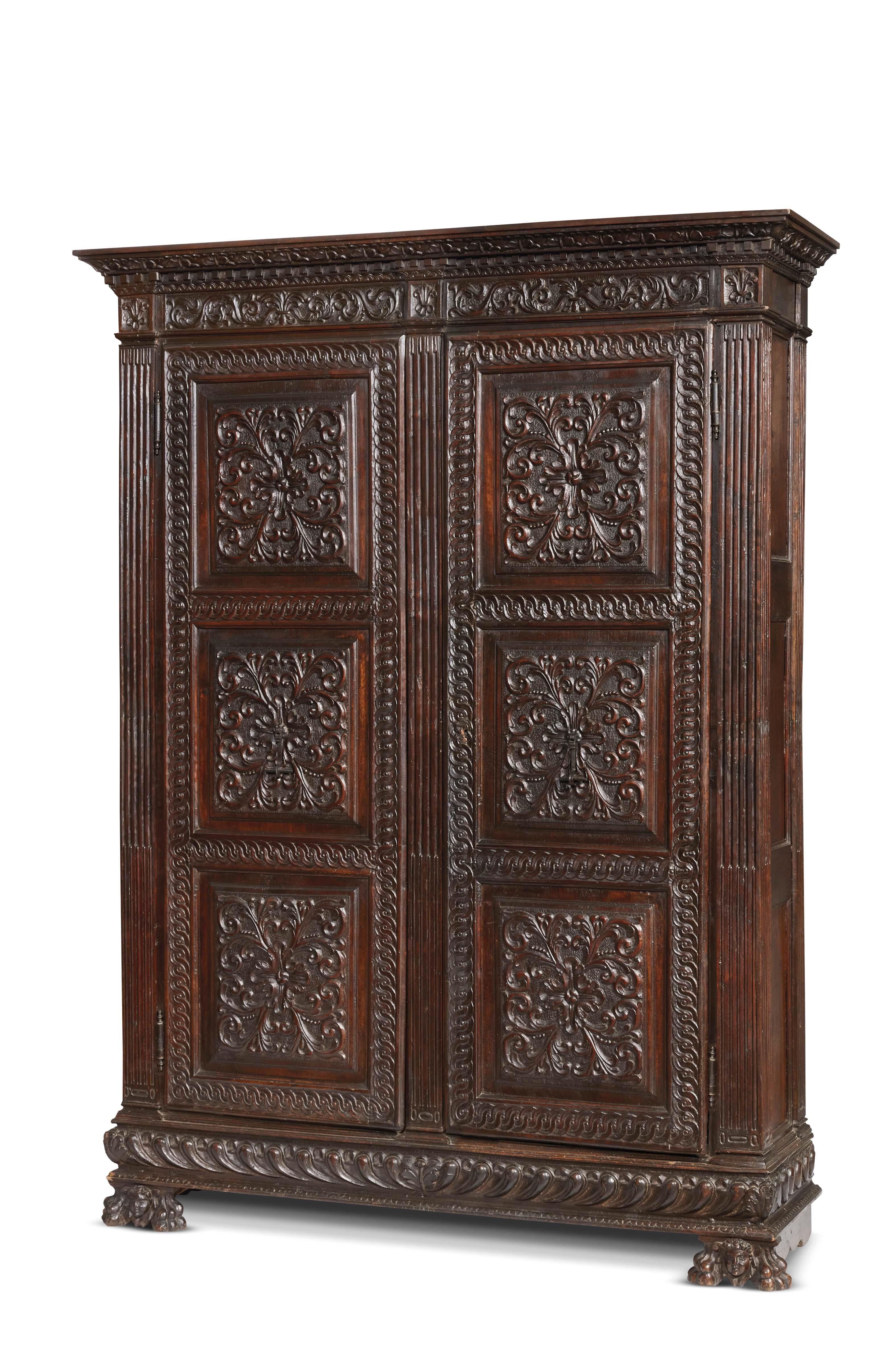 Ricordiamo ancora un armadio realizzato in legno di noce riccamente intagliato nelle cornici che profilano le superfici a loro volta ripartite in formelle quadrate intagliate con motivi fogliacei stilizzati. Eseguito a Firenze nel corso del XVI secolo, l’armadio ha una valutazione di 4.000/6.000 euro.