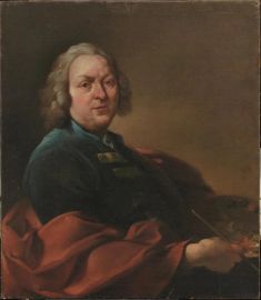 L'opera qui illustrata è stata assegnata nella relazione storico-artistica, a cura di Alessandro Bagnoli, al pittore Giovanni Domenico Ferretti che si raffigura in età ormai avanzata. A conferma di tale attribuzione lo studioso propone alcuni confronti con la testa di un San Giuseppe di collezione privata bolognese (cfr. F. Baldassari, Giovanni Domenico Ferretti, Milano 2002, p. 146); per il modo di panneggiare con l'uomo di spalle nella Predica di San Francesco Saverio agli indiani, già Volterra chiesa di San Giusto o con il San Michele arcangelo nell'Immacolata concezione, Campobasso, Convitto Nazionale. Dell'artista sono noti due Autoritratti, quello databile intorno al 1708 della Pinacoteca di Brera, Milano e quello della Galleria degli Uffizi, Firenze eseguito probabilmente nel 1719 (cfr. F. Baldassari, op. cit., pp. 126, 134-135). La pennellata veloce e al contempo soffice del pittore e l'uso accentuato del chiaroscuro sono aspetti che si ritrovano inoltre in altri ritratti dell'artista, come ad esempio in quello di Anton Francesco Gori (cfr. F. Baldassari, Giovanni Domenico Ferretti, Milano 2002, pp. 199-201, figg. 185-186). E' probabile che il presente dipinto sia stato eseguito sul finire del sesto decennio del Settecento, quando Ferretti concluse l'ultima commissione per Rutilio Sansedoni, lasciando il suo nome e data 1759 nell'Allegoria della Nobiltà d'animo coronata dalla Scienza, dipinta su un soffitto del secondo piano del palazzo. Tale datazione trova ulteriore conferma nel tipo di giacca indossata dall'effigiato. Pur non presentando nessuna iscrizione che ne attesti la pertinenza agli altri dipinti del nucleo è altamente probabile che anche quest'opera sia stata in antico in Palazzo Sansedoni a Siena. Dall'inventario del 1773 si apprende infatti che nella stanza denominata "dei pittori" erano appesi i ritratti di sei pittori tra cui un ritratto di Ferretti, non meglio descritto, probabilmente identificabile con il nostro.
