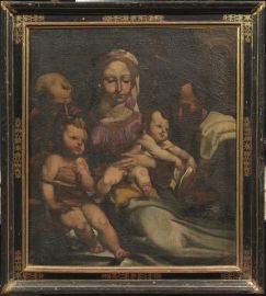 Il lotto qui proposto, proveniente dallo storico Palazzo Sansedoni di Siena, si compone di undici dipinti che per lo più si possono rintracciare citati nell'inventario dei beni del Cav. Ottavio Sansedoni redatto il 5 luglio 1773, a poco più di un mese dalla sua morte. Nella sua globalità la collezione Sansedoni (iniziatasi a formare fin dal XVI secolo) era composta da dipinti, sculture, bassorilievi, nonchè busti in marmo, tappezzerie, porcellane e disegni anche se a farla da padrona era la scuola pittorica senese cinque-seicentesca grazie a dipinti attribuiti a Baldassarre Peruzzi, Beccafumi, Francesco Rustici e Rutilio Manetti. (cfr: L. Bonelli, Palazzo Sansedoni, a cura di Fabio Gabbrielli, Siena 2004, pp. 479-480)