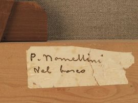 sul retro del telaio: etichetta autografa con iscritto "P. Nomellini / Nel bosco"
