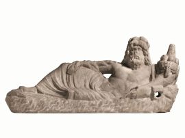 La scultura raffigura il fiume come un uomo in età matura semisdraiato a torso nudo con il mantello panneggiato sulle gambe. La statua è concepita per una visione rigidamente frontale con la testa eretta e lo sguardo rivolto in avanti. La divinità porta lunghi capelli che scendono a ciocche fin sulle spalle e insieme alla barba folta incorniciano il viso. Sulla testa una ghirlanda di frutti simbolo di prosperità, il viso di forma ovoidale presenta occhi ravvicinati con indicazioni della palpebre, naso rettilineo e zigomi appena accennati, bocca carnosa incorniciati da baffi e barba. Con il braccio sinistro il Fiume sostiene una grande cornucopia traboccante di messi e frutti. Il braccio destro è allungato e appoggiato sul ginocchio corrispondente sollevato ed è in parte ricoperto da un lungo tralcio di palma stretto nel pugno. Il piede destro è appoggiato su un piccolo coccodrillo disteso all’estremità. Il piano di appoggio della figura e la fascia anteriore sono scolpiti con un motivo ondulato che rimanda alle acque del fiume. Sotto il gomito una bocca quadrangolare permette l’uscita dell’acqua.