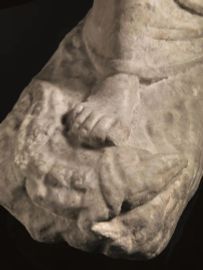 Materia e tecnica: marmo bianco venato scolpito e levigato