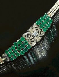 BRACCIALE IN ORO BIANCO 18 K E 14 K, SMERALDI E DIAMANTI