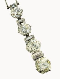 realizzato ad una linea di brillanti taglio vecchio rispettivamente di 1.34 ct circa, 2.40 ct circa, 3.04 ct circa e 3.63 ct circa, intercalati da baguette, g 11