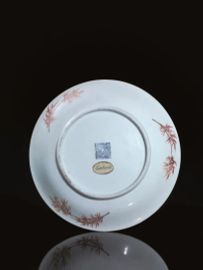 in porcellana famiglia rosa a fondo blu, decorato con medaglioni, diam. cm 25