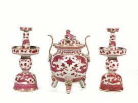 TRE PEZZI DI FORNITURA DA ALTARE, CINA, DINASTIA QING, SEC. XIX