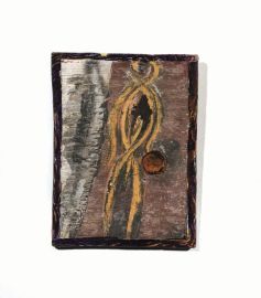 tecnica mista su legno sagomato, cm 21,5x15,5x2,5