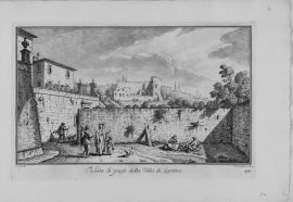 Veduta di paese dalla Villa di Loretino. Acquaforte. mm 310x484. Mason, 73. Bevilacqua, 44.