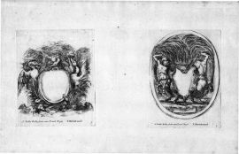 Serie completa ed omogenea di 12 tavole numerate (incluso frontespizio) raffiguranti cartigli ornamentali e grotteschi, tutte firmate in lastra. II stato su 2 con l’excudit di Pierre Mariette.