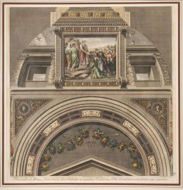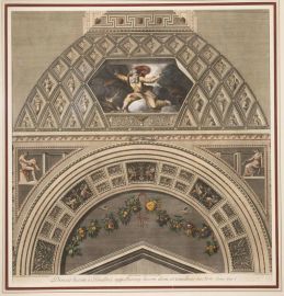 Serie completa ed omogenea di 13 bulini finemente acquerellati a mano, più una tavola doppia (Raphael, 33), pubblicate a Roma nel 1776. Dalle decorazioni Raffaello nelle Logge Vaticane tradotte in disegno per l’incisione da Gaetano Savorelli e Pietro Camporesi.