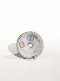 porcellana dipinta in policromia e oro con applicazioni in bronzo. Corpo ovoidale decorato a fiorellini policromi collegati da fregi dorati, a contornare due medaglioni ovali bordati in oro, uno dei quali centrato da monogramma AM e l'altro da ricco mazzo di fiori. Basi quadrangolari sagomate in bronzo dorato, coperchi con presa a pigna anch'esse in bronzo dorato. Marca Sèvres centrata da lettera F, altra marca Sèvres con data 1846 in azzurro, marca CHATEAUX DE compiange in rosso,