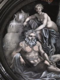 in smalto su rame circolare raffigurante l'Allegoria di un fiume; entro cornice in legno ebanizzato,