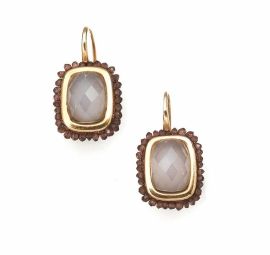 Demi parure in oro rosa, calcedonio e ametiste, composta da paio di orecchini e anello